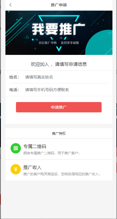 填写个人信息提交审核,等待审核结果。审核管理需由商家在“后台--会员管理--会员关系--资格申请”处进行是否审核通过。