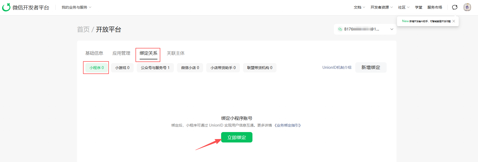 小程序绑到开放平台,现需要转到“微信开发者平台”操作: