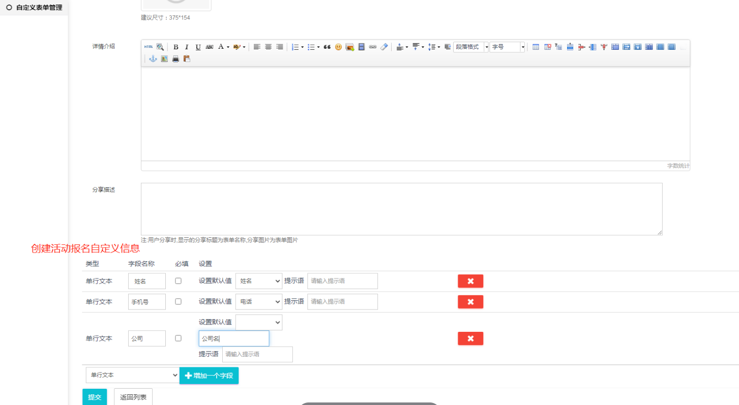 一、会务活动添加自定义表单
