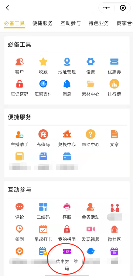 选择二维码类型,选择会员,优惠券,商品(支持选择平台、门店的商品,不支持聚合供应链、供应商、酒店、租赁和语音的商品),
