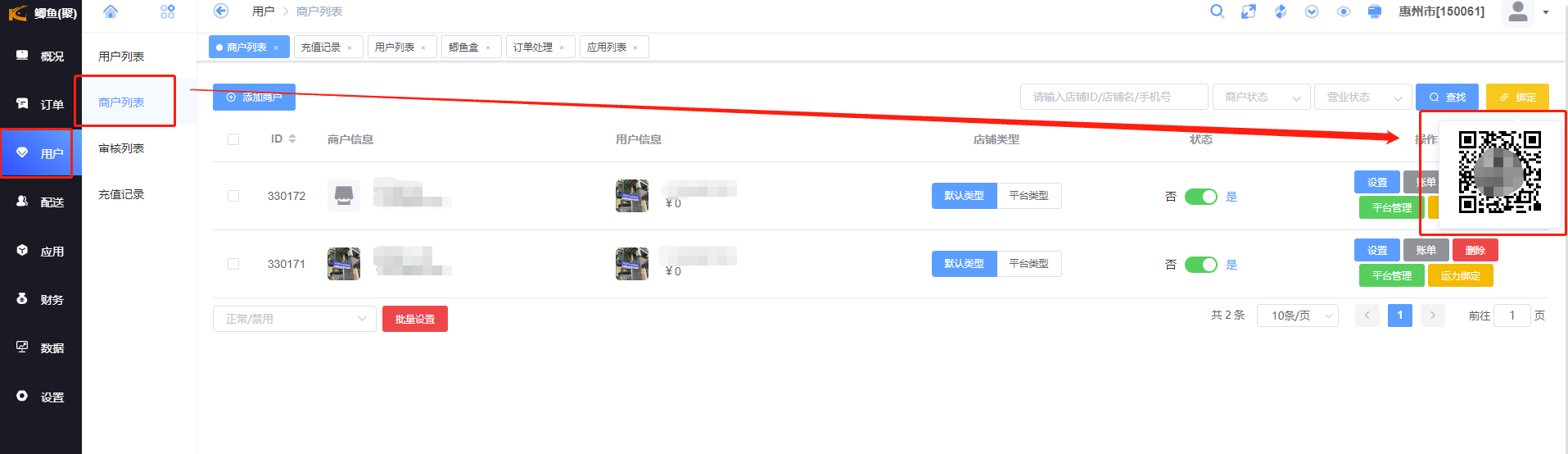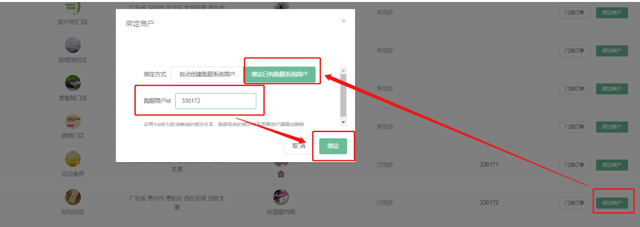 在系统应用-跑腿配送-门店管理绑定鲫鱼商户(在鲫鱼代理后台商户列表查看商户id)