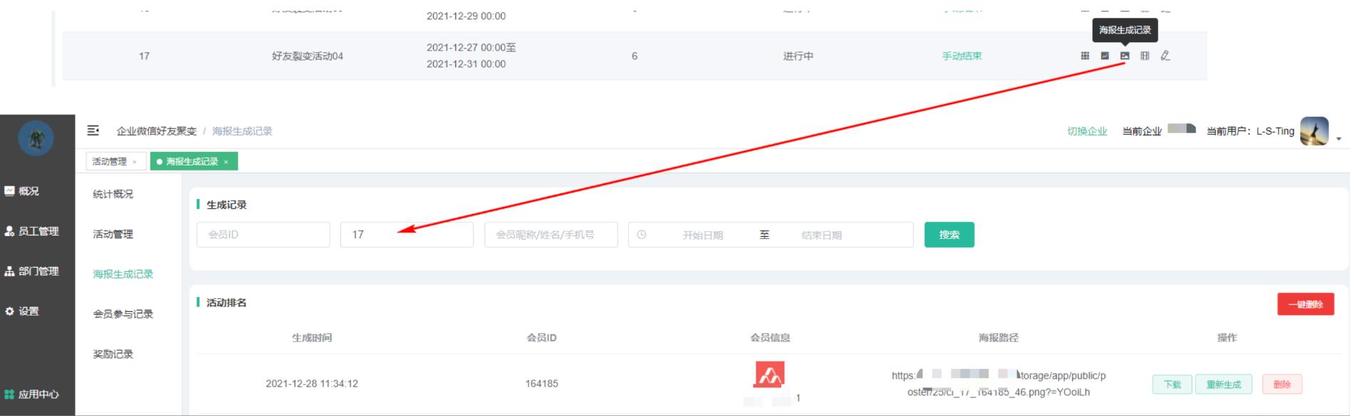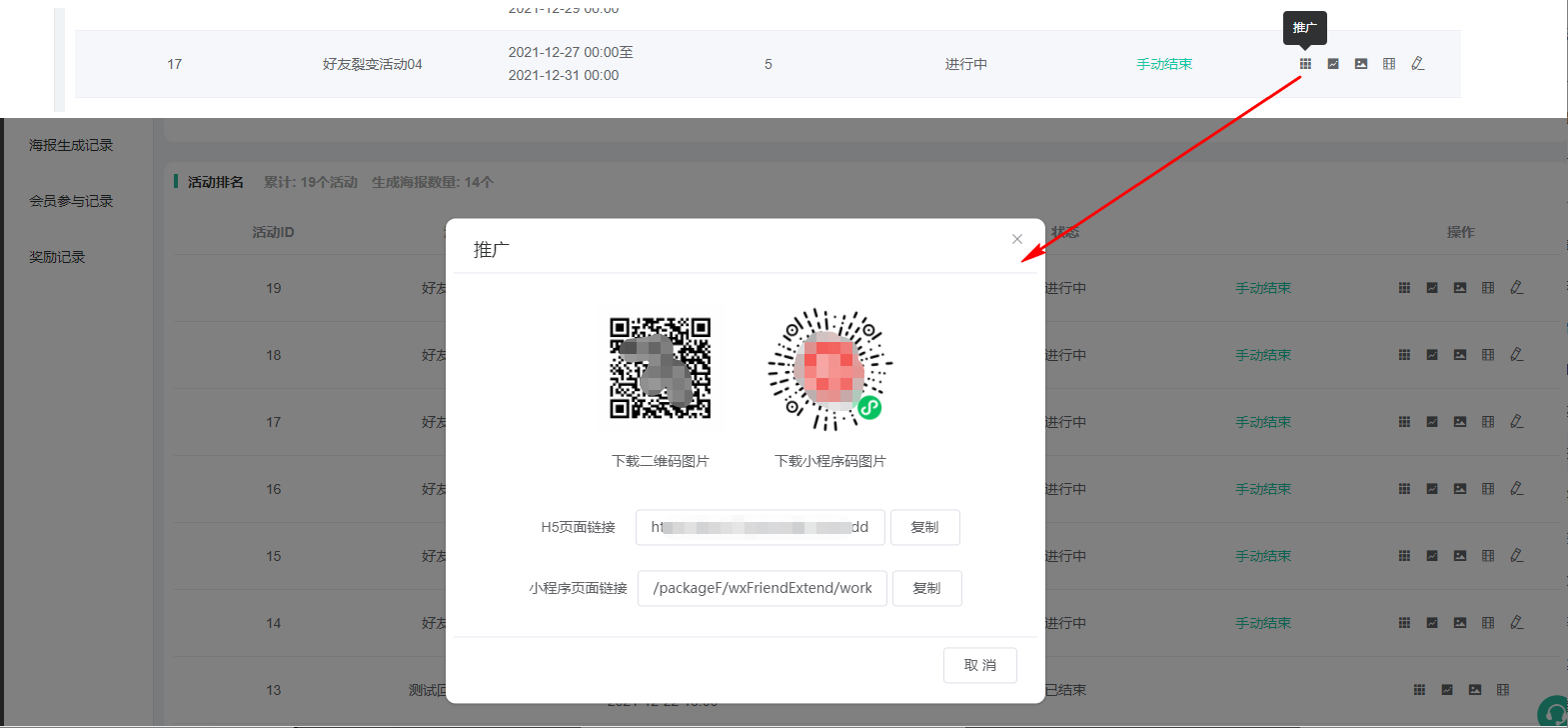 点击跳转到对应活动的海报生成记录