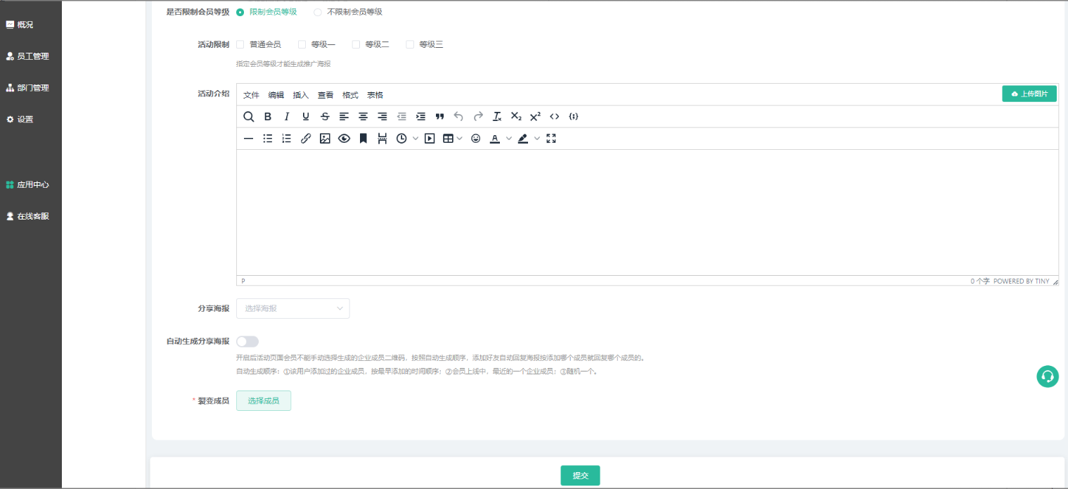 企业平台管理增加勾选好友裂变权限