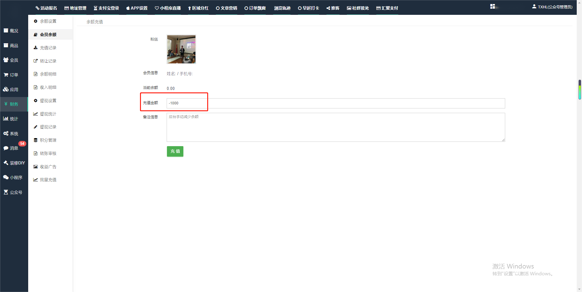 目录 搜索 展开 一、前期准备资料二、数字乡村码-上线操作指南1、服务号的申请流程及认证2、申请小程序流程3、开放平台绑定小程序和公众号三、数字乡村码-系统操作数字乡村码系统管理-概况数字乡村码-商品管理1、发布商品2、商品列表3、商品表单4、商品分类5、品牌管理6、配送模板7、评论管理8、优惠券管理9、商品标签10、退货地址设置11、满额优惠12、批量操作13、配送方式14、基础设置15、商品隐藏四、数字乡村码-会员管理1、全部会员2、会员等级3、会员分组4、资格申请5、会员设置6、推广中心设置7、会员邀请码8、会员关系链修改关系链修改记录9、会员合并记录10、账号注销管理11、会员设置中心五、数字乡村码-订单管理1、订单管理列表2、订单处理流程3、订单状态4、订单修改价格5、订单退款退货6、多包裹发货7、批量发货订单操作步骤8、催发货订单9、物流查询六、数字乡村码-财务管理1、余额设置2、会员余额3、充值记录4、转让记录5、余额明细6、收入明细7、提现设置8、提现统计9、积分管理10、转账审核11、收益广告12、批量充值七、数字乡村码-系统管理1、商城入口2、商城设置①、商城设置②、订单设置③、物流查询④、短信⑤、联系方式⑥、分类⑦、优惠券⑧、分享⑨、幻灯片⑩、广告位⑫、地图设置3、交易设置4、微信模板消息自定义消息模板(新版)自定义消息模板(旧版)小程序消息模板公众号模板消息变更公告5、语言设置6、权限管理7、多媒体管理八、数字乡村码-消息管理九、数字乡村码-应用管理十、数字乡村码系统-数据统计十一、数字乡村码-页面装修DIY1、模板管理2、店铺页面3、顶部导航4、底部导航5、DIY模板市场6、首屏广告7、基础设置8、装修DIY尺寸建议十二、供应商功能插件操作指南1、供应商2、门店-收银台门店申请和使用步骤门店管理①、门店-收银台 营销设置②、门店-收银台 分润设置门店分类门店申请门店审核门店商品门店商品订单收银台订单数据统计核销员基础设置默认设置门店装修3、微社区4、会务活动十三、营销插件操作指南活动报名提货卡新人奖微店问卷调查积分视频分享1、视频分享基础设置2、视频分享发现管理3、视频分享分类管理4、视频分享评论管理5、视频分享分红记录6、视频分享短视频中心每日红包幸运大抽奖签到优惠券二维码任务奖励优惠劵文章音频文章付费文章限时购新海报拓客卡操作流程积分活动素材中心视频红包十四、入驻门店应用类1、门店预约2、附近商品3、门店定位设置4、门店控制5、门店满额包邮6、门店满额减7、导入商品8、门店搜索9、门店股东10、核销券11、多门店核销1、商城后台设置2、前端功能演示十五、常见问题1、后台登录密码修改流程2、会员-余额,积分,后台如何进行充值与扣除3、如何修改上下级关系4、一种万能的获取商城小程序路径的方法 暂无相关搜索结果! 阅读次数:1506 本文档使用 模王系统 发布 2、会员-余额,积分,后台如何进行充值与扣除 会员-余额,积分,后台如何进行充值与扣除一.如何进行余额充值-扣除1.财务-会员余额-搜索会员昵称-右边点击充值余额2.扣除余额,只需要在充值金额前加上 - 号;比如充值-100,等于扣除100余额二,如何手动充值积分-扣除积分(充值与扣除逻辑跟余额是一样的)文档更新时间: 2024-01-05 14:28 作者:链上旅行
