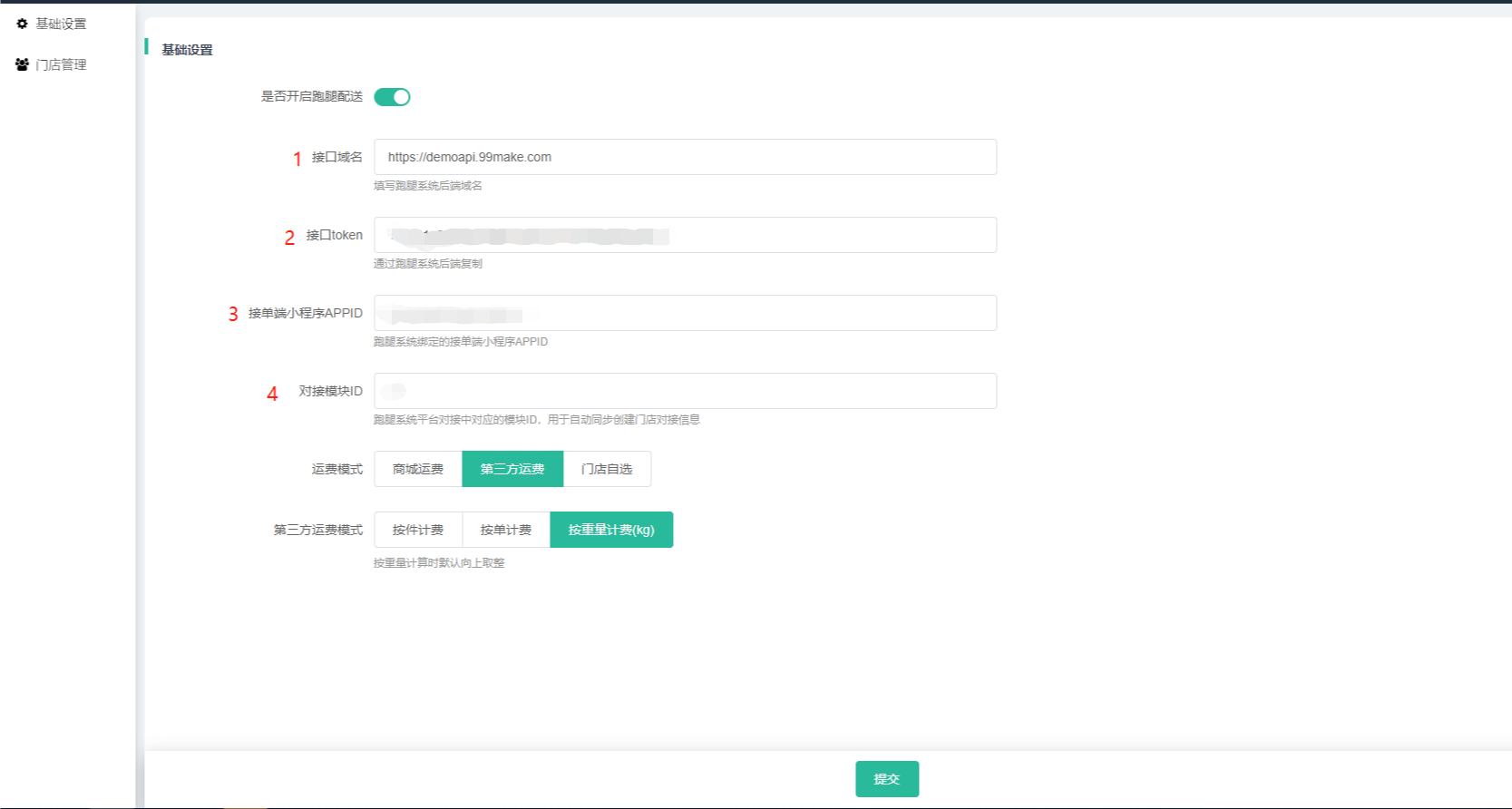 3. 安装跑腿配送插件,并且将平台信息填入基础设置页面