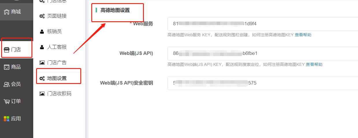门店独立后台配置高德地图