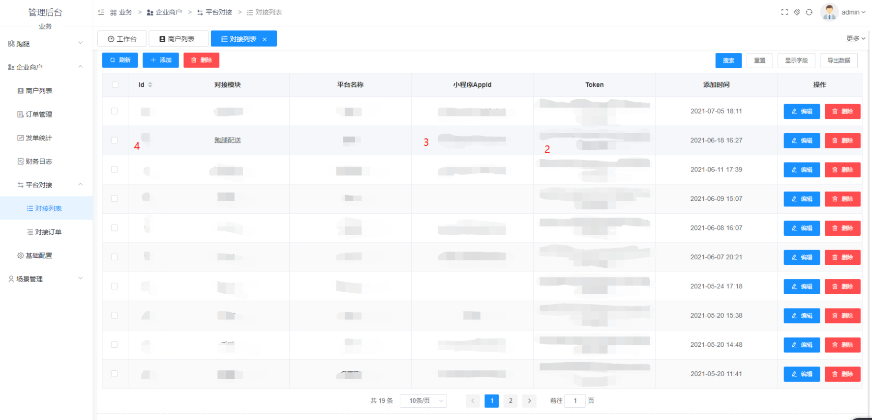 ②接口token,跑腿后台-平台对接-对接列表中对应平台的token。