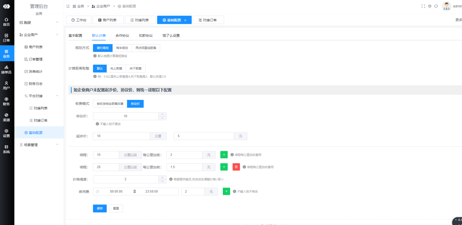 3. 安装跑腿配送插件,并且将平台信息填入基础设置页面